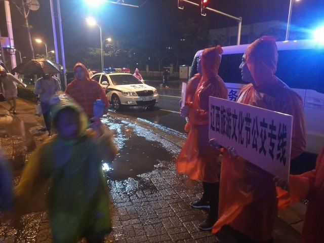 6月18日晚,遼西首屆旅游文化節(jié)開(kāi)幕式在錦州濱海體育中心舉行。做好旅游文化節(jié)期間公交專線運(yùn)營(yíng)保障工作是落在我們錦州公交公司的一項(xiàng)政治任務(wù),公司上下高度重視,在保證安全的前提下,公司領(lǐng)導(dǎo)與全體駕駛員和志愿者們做好各項(xiàng)運(yùn)營(yíng)保障工作,確保不發(fā)生群眾滯留現(xiàn)象,全力以赴做到讓政府放心,讓市民滿意。 正當(dāng)文藝演出如火如荼進(jìn)行時(shí),天公不作美,下起了瓢潑大雨,觀眾們都跑向公交停車點(diǎn),為此公交公司啟動(dòng)了應(yīng)急預(yù)案,提前從市內(nèi)抽調(diào)40臺(tái)公交車,保證把每一位乘客平安送回市內(nèi),雖然天空下著雨,但錦州公交總公司的李國(guó)政總經(jīng)理和志愿者們堅(jiān)守在第一線,保證每一輛車安全發(fā)往市內(nèi),讓我們?yōu)楣蝗它c(diǎn)贊!
