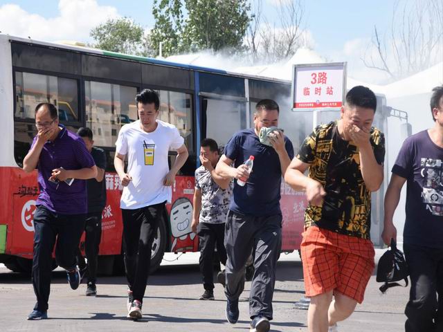 按照演練方案要求,整個(gè)演練活動(dòng)分為增強(qiáng)反恐、消防意識(shí),對(duì)消防器材全面掌握以及使用,模擬公交車(chē)起火逃生演練三部分。市公安局反恐支隊(duì)副支隊(duì)長(zhǎng)張愛(ài)友講解反恐工作的主要內(nèi)容及防范重點(diǎn);市消防局凌河消防大隊(duì)的官兵講解及示范滅火器的使用方法。最后,模擬演練了公交車(chē)突發(fā)火情,駕駛員組織乘客應(yīng)急逃生。在演練現(xiàn)場(chǎng),一輛公交車(chē)在行駛中突然濃煙滾滾,駕駛員按照預(yù)定方案迅速打開(kāi)前后車(chē)門(mén),引導(dǎo)乘客有序逃生……